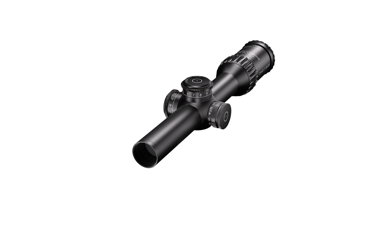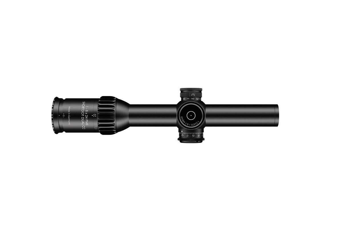 4060537045154 The 1‑8×24 PM II ShortDot Dual CC is a premium multipurpose riflescope designed to bridge ultra‑fast close‑quarters engagement and precision mid‑range shooting. With a full 1–8× magnification range, it integrates both a high‑visibility red‑dot sight for rapid acquisition and a tactical reticle for comprehensive zoom usage. Key Features and Highlights Dual focal plane system: Combines a daylight‑visible red dot in the second focal plane (SFP) with a tactical reticle in the first focal plane (FFP) for consistent hold‑points across the zoom range. Patented Close‑Combat Mode (CC‑Mode): When set at 1× magnification the parallax is fixed at approx. 7 m for true parallax‑free shooting at close range; above ~1.1× it transitions to ~100 m enabling accurate mid‑range engagement. Large exit pupil and generous eye relief: Optimized for fast, intuitive use in dynamic or static shooting scenarios—providing comfortable alignment whether standing, kneeling or prone. Compact and rugged design: With a 30 mm main tube diameter, length of approx. 293 mm and weight of approx. 635–650 g depending on configuration, this scope is built to handle extreme conditions—including low temperatures and high recoil/shock. High optical quality: Field of view spans roughly 35.3–4.9 m at 100 m across the zoom range, offering wide situational awareness at low magnification and refined detail at higher zoom. Precision mechanics: Turrets are ultra‑low profile, lockable, extremely durable and designed for exacting use in tactical or competition environments. Typical Specifications Magnification: 1–8× Focal Plane: Dual (1st and 2nd) Parallax: CC‑Mode ~7 m; Standard Mode ~100 m (optional up to ~300 m) Field of View: ~35.3–4.9 m @100 m Exit Pupil: ~9.8–3.0 mm Eye Relief: ~90 mm Tube Diameter: 30 mm Length: ~293 mm Weight: ~635–650 g