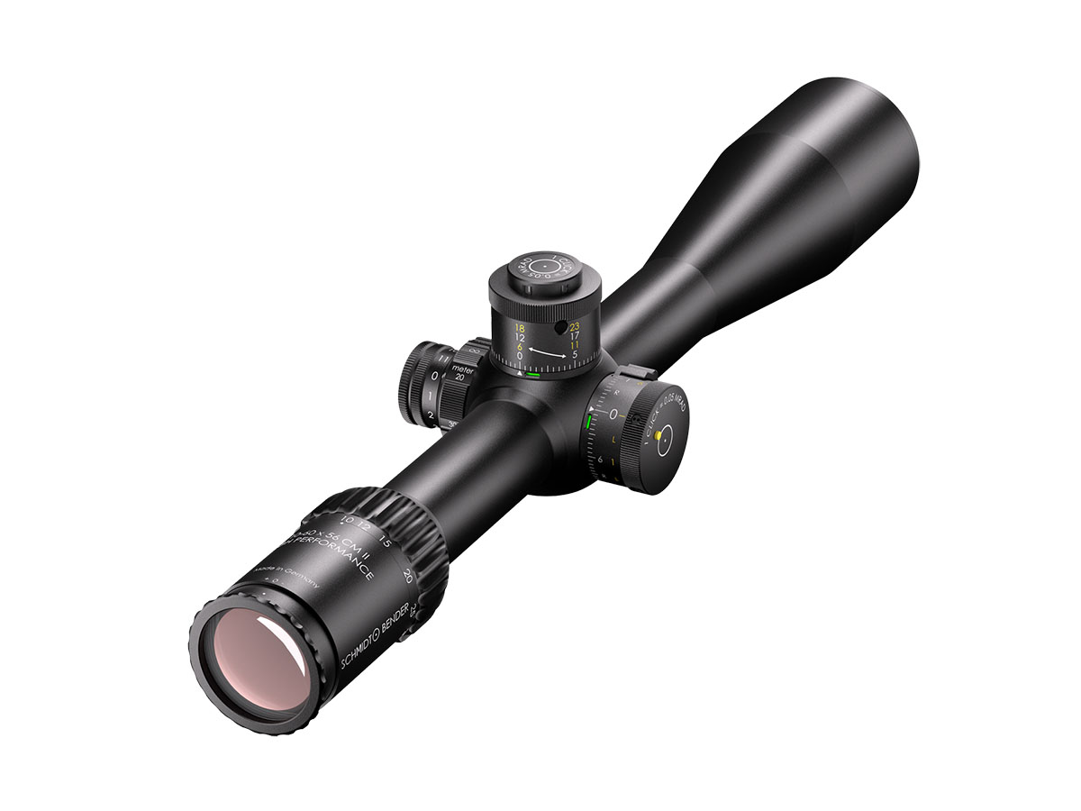 4060537066616 The 10–60×56 CM II High Performance (1.BE) is Schmidt and Bender’s flagship long‑range optic — engineered for extreme‑range competition, professional precision shooting and reconnaissance where uncompromising clarity, magnification and adjustment range are mandatory. Combining a massive 10–60× zoom with a large 56 mm objective, this scope delivers exceptional image resolution and brightness at extreme distances while retaining practical ergonomics for field use. Advanced optical coatings and a refined optical path yield light transmission well above 90%, producing high contrast and excellent target detail even at very high magnifications. The reticle in the first focal plane (FFP) ensures hold‑offs and subtensions remain accurate across the entire magnification range, making the scope ideal for real ranging and ballistic corrections on the fly. Mechanically the CM II High Performance is built around a 34 mm main tube with huge internal adjustment capacity. The elevation envelope exceeds 23 mrad (≈79 MOA) to cover extreme ballistic needs, and ultra‑fine turret options (as low as 0.1 mrad click value) allow precise, repeatable adjustments. The housing is engineered to operate in harsh environments and wide temperature ranges while maintaining mechanical integrity and point‑of‑impact reliability. Key Specifications Magnification: 10–60× Objective Lens Diameter: 56 mm Main Tube Diameter: 34 mm Elevation Adjustment Range: > 23 mrad (approx. 79 MOA) Typical Click Value: 0.1 mrad (configuration‑dependent) Eye Relief: ~90 mm Exit Pupil: approx. 5.6 mm → 1.0 mm across the zoom range Weight: ~940–999 g (configuration dependent) Length: ~442 mm Optical Transmission: > 90 % Reticle: First Focal Plane (FFP) Durability: Weatherproof, fogproof and built for professional field use