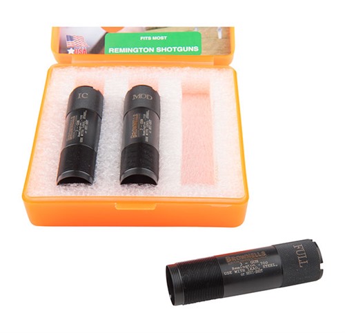 Brownells & Carlson’s 3-Gun Extended Choke Tubes are designed specifically for use in 3-Gun competitions. This 3-piece choke tube set allows the shooter to select the exact choke tube needed for any stage. Included choke tubes are Full, Improved Cylinder & Modified, ensuring you can quickly take out clay pigeons or knock down that long distance steel target. The three tubes are manufactured from 1704 stainless steel and designed to throw tighter and denser patterns than conventional choke tubes. Each choke tube is knurled on the end to allow for quick and easy removal. Constriction and size are laser marked on the end and body for easy reference. Slugs, sabots, and rifled slugs are not to be used in any choke constriction tighter than Improved Cylinder. Remember to pattern your shotgun choke tube with the specific shot shell load you are going to be using. Different brands of ammunition throw different patterns from the same choke tube. This choke is backed by Brownells & Carlson's lifetime warranty. Choke Tube Sets available for Remington 12 Gauge shotguns. Though not likely to be used at 3-Gun events, steel shot may be used through these choke tubes with exceptional results. Do not shoot steel shot larger than BB or any steel load faster than 1550 FPS through the Full or Extra Full Constrictions.