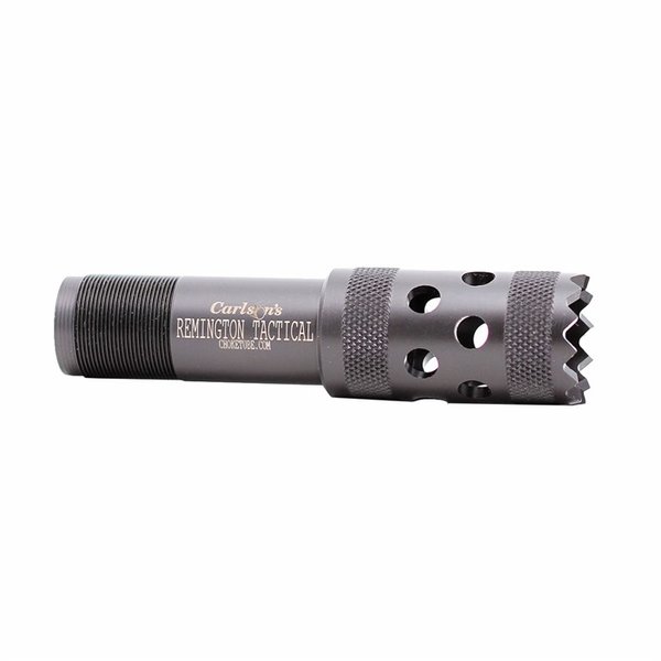 Machined steel, extended tactical choke with large diameter bore provides extra wide patterns at close range for home defense or CQB operations. Features a serrated, saw-tooth tip that holds tight against locks and hinges to prevent the muzzle from sliding during forced entry operation. Twelve, equally spaced ports redirect combustion gases to reduce felt recoil and prevent barrel damage when used for forced entry. Knurled gripping surface makes it easy to install and remove the choke without special tools. Precision machined from 1704 stainless steel for maximum strength, then treated with a manganese phosphate finish for improved wear resistance. Models available for Remington, 12 gauge only. Can be used with lead, buckshot, hevishot, or steel shot without damage.