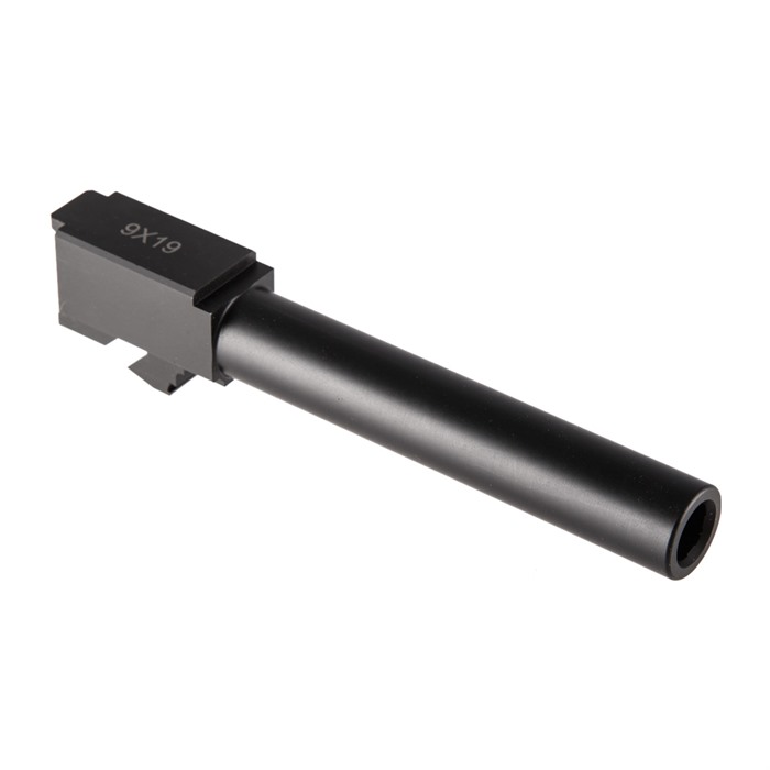 The Brownells Extended Barrel for Glock® 19 is designed to work hand-in-glove with our extended slides for the popular compact 9mm pistol. Due to changes in the slide-to-frame geometry caused by mating the long slide on the compact Glock 19 frame, a factory Glock 17 slide will not work with our slide. This extended barrel is correctly configured to ensure that your new "long slide" G19 functions perfectly. This extended barrel and the slide work together to give you a longer sight radius for more accurate shooting and better recoil control - and a pistol that’s more comfortable to shoot all around. Our Extended Barrel for Glock 19® is available with a Plain muzzle or Threaded (1/2"-28 tpi) to accept a compensator or silencer. Easy drop-in installation 9mm Luger chambered (of course!) Corrosion-resistant 416R stainless steel Durable black Nitride finish for excellent resistance to surface wear 1-10" right-hand 6-groove rifling Threaded model has ½"-28 muzzle threads Constructed of high-grade 416R stainless steel alloy, this extended barrel is precision machined to ensure an exact fit to drop right into your pistol’s extended slide and preserve the superior reliability and performance your expect from your Glock® 19.