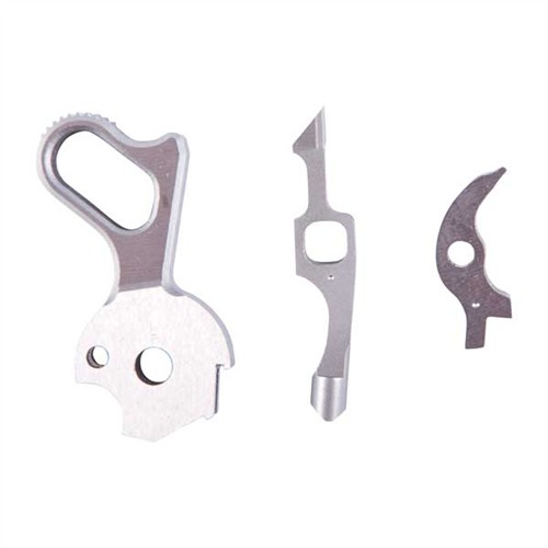 Besonderer Billet-Werkzeugstahllegierung (TS), gehärtet auf Rc 50-53, oder Edelstahl (SS), gehärtet auf Rc 50-55, beide in-the-white. Sets beinhalten Hammer, Sear und Disconnector. Tactical II – Alle Teile in-the-white. .018\" lange Hammerhaken. MARSOC – Hammer blau, Disconnector und Sear in-the-white. .023\" lange Hammerhaken.