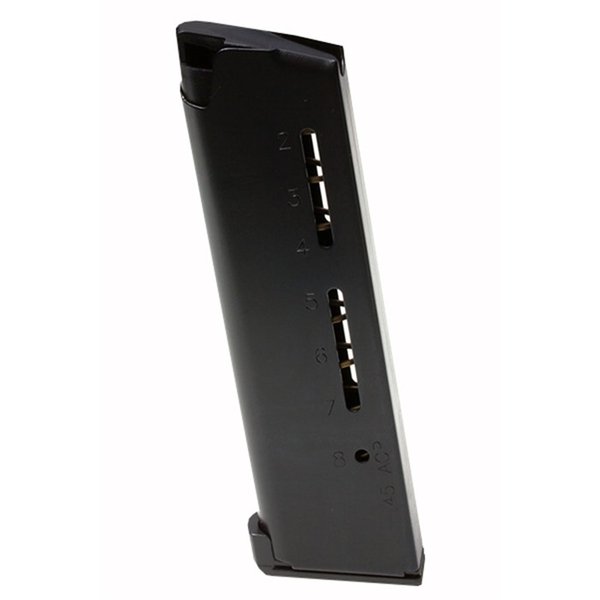 - Kapazität: 8 Schuss, passend für das Gov’t Model; Rundenzählzahlen neben den Sichtlöchern gestempelt.