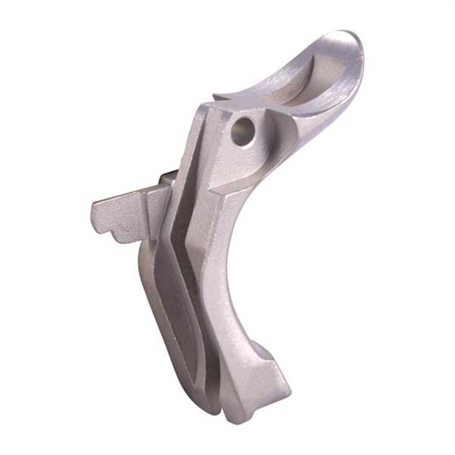 Wide grip safety spreads recoil out over a larger area of the hand for increased comfort. Standard Model beavertails feature a flared "tail" that quickly guides hand into position and totally eliminates hammer bite on the web between the thumb and finger. High Grip Model has an upswept "tail" that pushes the wrist into a straight position for faster sight pickup and recovery, and a raised pad for positive palm contact. Requires contouring frame and fitting to the trigger stirrup.