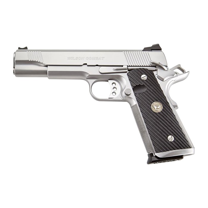 CQB 1911 ELITE FULL SIZE 45 ACP SEMI-AUTO HANDGUN The Close Quarters Battle Elite blows the competition away with a standard package of custom features designed to meet the needs of tactical shooting professionals, each selected with the input of experts in the field. Here’s what is standard: Bullet Proof® parts throughout, serrations on the top and the rear of the slide, Battlesight rear sight with fiber optic front sight, matching serrations on the back of the extractor, checkered mainspring housing and front strap for a sure grip, and standard G10 grips with a tapered cut-out for easy access to the semi-extended magazine release button. If your requirements are for a combat pistol, a must-work-every-time firearm, custom built to your specifications, put a Wilson Combat® CQB Elite On Your Side® today. FEATURES: Full-Size Carbon Steel frame High-Cut checkered frontstrap High-Ride Bullet Proof® beavertail grip safety Bullet Proof® Tactical thumb safety 3 ½# – 4 ½# crisp trigger pull Bullet Proof® magazine well Bullet Proof® magazine release G10 Diagonal flat-bottom grips 5" Carbon Steel slide Battlesight with fiber optic front sight 5" Stainless Match-Grade barrel & bushing, hand fit 30 LPI slide top serrations 40 LPI serrated rear of slide Front cocking serrations SPECIFICATIONS: Cartridge: 45 ACP Magazine capacity: 8 rounds Barrel length: 5" Overall length: 8.7" Sight radius: 6.6" Height: 5.6" Width: 1.3" Weight empty: 41 oz Weight loaded: 46.6 oz