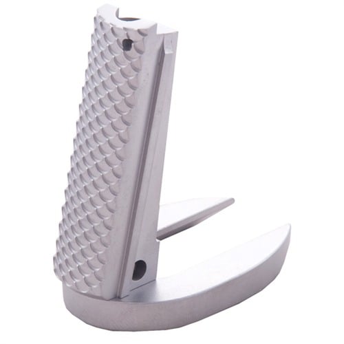 Drops right onto 1911 Auto frames without gunsmithing, and the separate magazine well can be removed without disassembling the pistol. Enlarged magwell greatly increases frame opening for faster and easier magazine changes. Flat housing increases grip surface area to help keep the pistol from riding up during rapid fire. Available in blue or stainless steel with 25 lpi machined checkering that helps keep the pistol centered in your grip. Also available with the exclusive Chainlink and Chainlink II designs. Both machined-in patterns provide a very secure, non-slip gripping surface, without the “sharpness” of conventional checkering that can sometimes abrade your hand or grab at your clothing during a concealed carry draw. Also available for the Officer’s model in blued or stainless steel with 25lpi checkering.