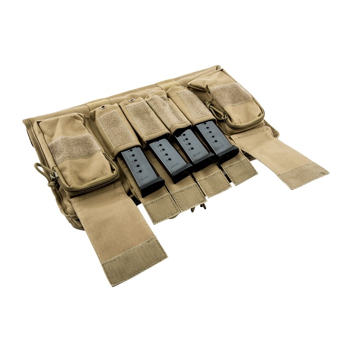 - Vier Taschen für Pistolenmagazine an der Außenseite