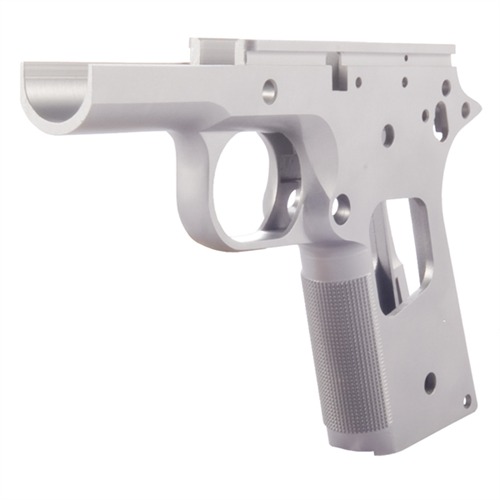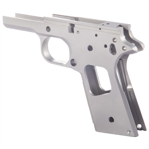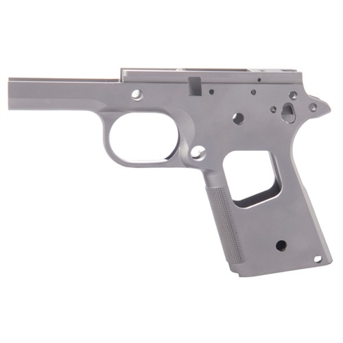 Build an outstanding, custom 1911 using one of these top-quality, single-stack receivers as the foundation. Models and features available for any custom project needs. Precision cast from carbon or stainless steel, and CNC machined to final dimensions. Heat treated to Rc 22-24 for optimum performance and durability. Oversize frame rails allow the gunsmith to achieve an exceptionally tight slide-to-frame fit for more consistent accuracy. Select models available with smooth front strap or with crisp CNC machine-cut checkering. Officers models are available with 25 lpi checkered front strap and pre-cut to accept barrels with Wilson-style feed ramp .