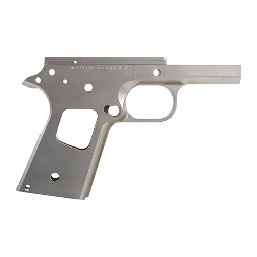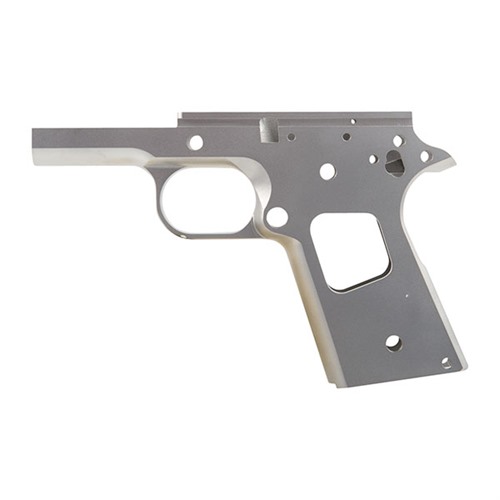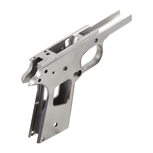 Build an outstanding, custom 1911 using one of these top-quality, single-stack receivers as the foundation. Models and features available for any custom project needs. Precision cast from carbon or stainless steel, and CNC machined to final dimensions. Heat treated to Rc 22-24 for optimum performance and durability. Oversize frame rails allow the gunsmith to achieve an exceptionally tight slide-to-frame fit for more consistent accuracy. Select models available with smooth front strap or with crisp CNC machine-cut checkering. Officers models are available with 25 lpi checkered front strap and available in a plain, uncheckered configuration that accepts standard, unramped barrels.