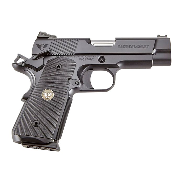 The Tactical Carry Compact has been designed by Bill Wilson as a next generation compact custom pistol and is an ideal choice for an everyday carry piece when maximum concealability is required. The Compact steel frame and slide fitted with our Bullet Proof ® round butt one-piece magwell enhances reloading under stress. The Tactical Carry also comes complete with many of our most popular performance and cosmetic options, like carry cuts, ball end mill slide cuts, serrated top and rear of slide and countersunk slide stop post. The reduced profile concealment grip safety and hammer in conjunction with round butt magwell guarantees that the Tactical Carry will be a Bullet Proof® performer for you on the range or on the street. SPECIFICATIONS: Compact-Size Carbon Steel Frame High-Cut Checkered Frontstrap Bullet Proof® Round Butt Magazine Well Concealment Bullet Proof® Beavertail Grip Safety and Hammer Bullet Proof® Ambidextrous Thumb Safety 3 ½# – 4 ½# Crisp Trigger Pull with Medium-Length Pad Bullet Proof® Magazine Release G10 Starburst Grips Torx Head Grip Screws Countersunk Slide Stop 4” Carbon Steel Slide Heavy Machine Chamfer on Bottom of Slide Battlesight with Fiber Optic Front Sight 4” Stainless Match-Grade Cone Barrel, Flush-Cut Reverse Crown Fluted Chamber Fluted Barrel 30 LPI Slide Top Serrations 40 LPI Serrated Rear of Slide Carry Cuts/Ball Endmill Cuts