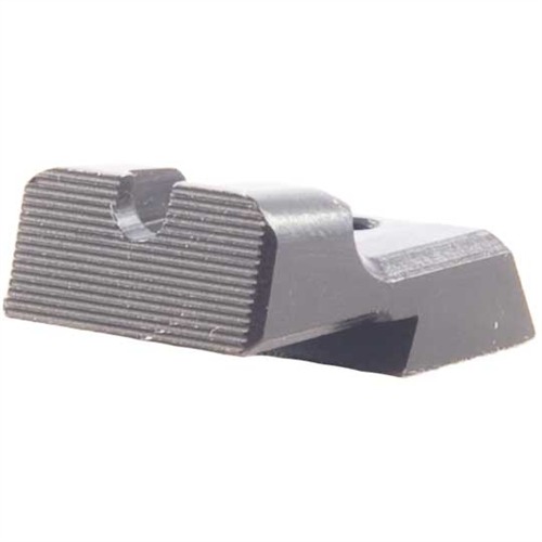 Fixed rear sight is precision machined from heat-hardened 4140 steel bar stock, so it withstands the wear and tear of daily carry, yet delivers a clear, precise sight picture. Perfect for concealed carry, duty, or combat pistols where a rugged, reliable rear sight is mission critical. Fully “dehorned,” with rounded and chamfered edges to prevent snagging on holster, clothing, or other gear that could impede draw. Easy-to-acquire .125" high U-shaped notch aligns quickly with a wide variety of factory-height front sights, including fiber optic, tritium dot, and gold beads. Rear face of the plain black blade has 40 lpi serrations for a glare-free sight picture under almost any light conditions; front of the blade has ledge contour to aid in one-hand cocking. A hard, manganese phosphate parkerized finish that matches many tactical pistol finishes adds strength and surface wear resistance. A hidden setscrew helps anchor the sight in the slide dovetail for extra-secure mounting and resistance to shifting under recoil. Cut to fit the popular Novak Lo-Mount-type dovetail.