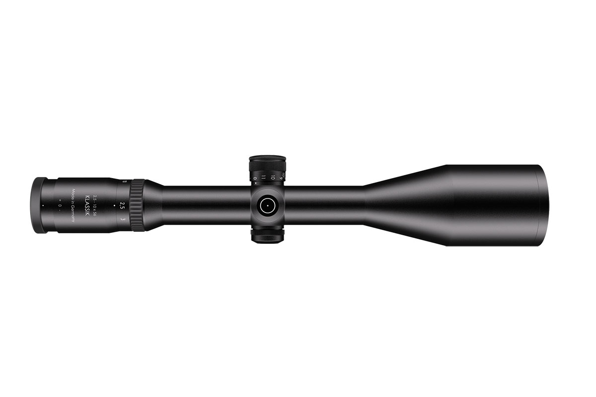 4060537016925 The 2.5‑10×56 Klassik from Schmidt and Bender is a top-tier hunting riflescope built for stand hunting, stalking and twilight to night operations. With a magnification range of 2.5–10× and a large 56 mm objective lens, it excels in letting in maximum light when conditions are challenging. The scope features a first focal plane (FFP) reticle, ensuring that hold points remain accurate at any magnification. The generous exit pupil of around 14.0–5.6 mm combined with an eye relief of 90 mm, and a field of view approximately 12.8–4.0 m at 100 m, deliver quick target acquisition and a clear sight picture even in low-light environments. Built with high optical transmission of around 90%, nitrogen-filled housing and classic turret design with 1 cm click value at 100 m, the Klassik model is designed for reliability and precision. Key Specifications: Magnification: 2.5–10× Objective Lens Diameter: 56 mm Tube Diameter: 30 mm Exit Pupil: approx. 14.0–5.6 mm Eye Relief: 90 mm Field of View: approx. 12.8–4.0 m @100 m Optical Transmission: approx. 90% Click Value: 1 cm @100 m Crafted in Germany with premium materials and exacting standards, the 2.5‑10×56 Klassik is an exceptional choice for hunters who demand uncompromising clarity, build quality and performance when every last ray of light matters.