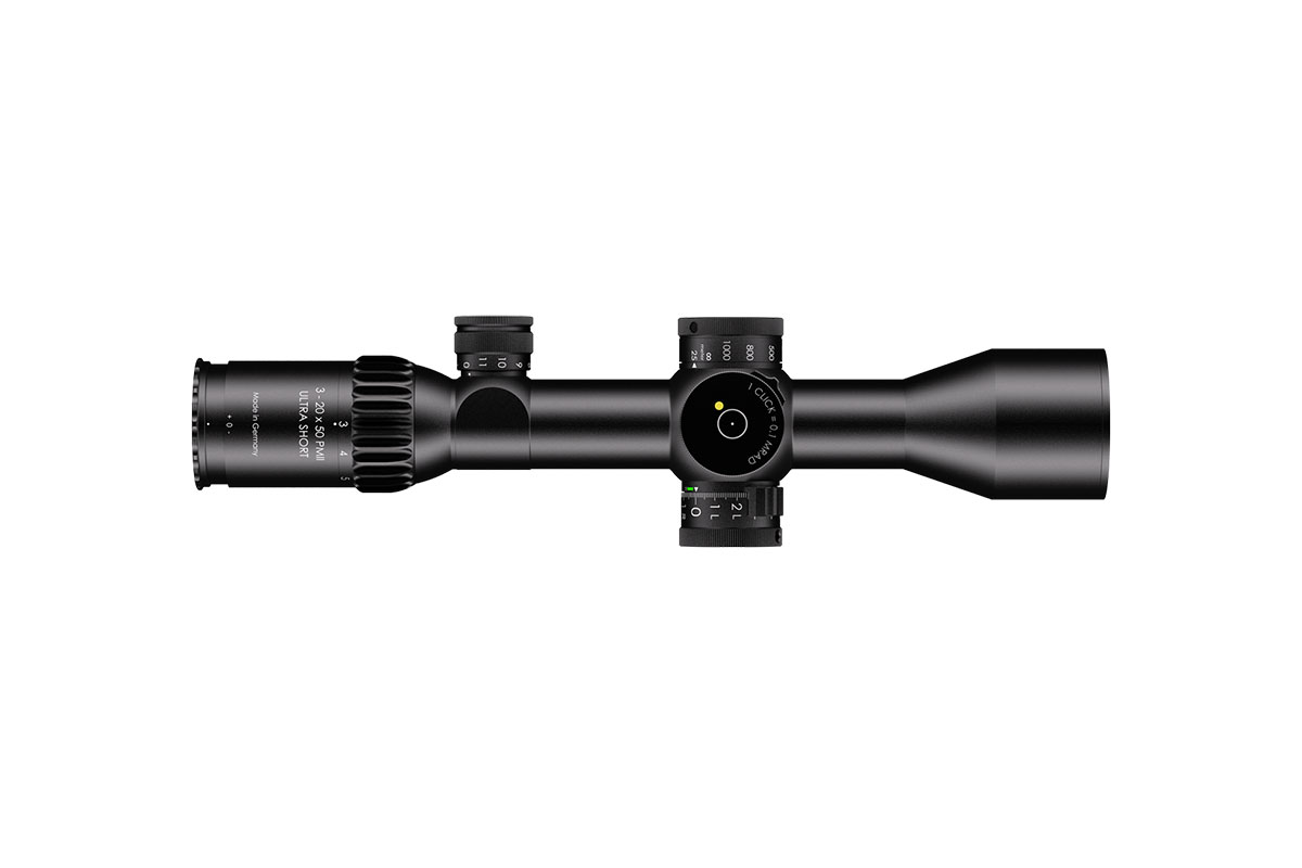 4060537040036 The 3‑20×50 PM II Ultra Short from Schmidt and Bender is a compact yet powerful riflescope engineered for high-performance engagements across medium to long distances. With its 3–20× magnification range and a 50 mm objective lens, it offers outstanding optical clarity and flexibility in a streamlined form factor. Constructed around a robust 34 mm main tube, it maintains a length of approximately 340 mm and weighs around 900 g, striking an excellent balance between size and performance—ideal for mounting on compact platforms without compromising optics. Its field of view spans roughly 13.0–2.1 m at 100 m, providing broad situational awareness at lower magnification and refined detail at the high end. The exit pupil ranges around 11.4–2.5 mm, and the eye relief is approximately 90 mm, supporting comfortable shooting in varied positions while maintaining strong light-gathering even as light fades. Advanced features include first focal plane (FFP) illuminated reticle options, side parallax adjustment (from approx. 25 m to infinity), and a low-profile elevation turret optimized for tactical precision. Key Specifications: Magnification: 3–20× Objective Lens Diameter: 50 mm Main Tube Diameter: 34 mm Field of View: approx. 13.0–2.1 m @100 m Exit Pupil: approx. 11.4–2.5 mm Eye Relief: approx. 90 mm Length: approx. 340 mm Weight: approx. 900 g With precision optics, compact build, and rugged mechanical design, the 3‑20×50 PM II Ultra Short is built for serious shooters who demand premium performance in a versatile package.