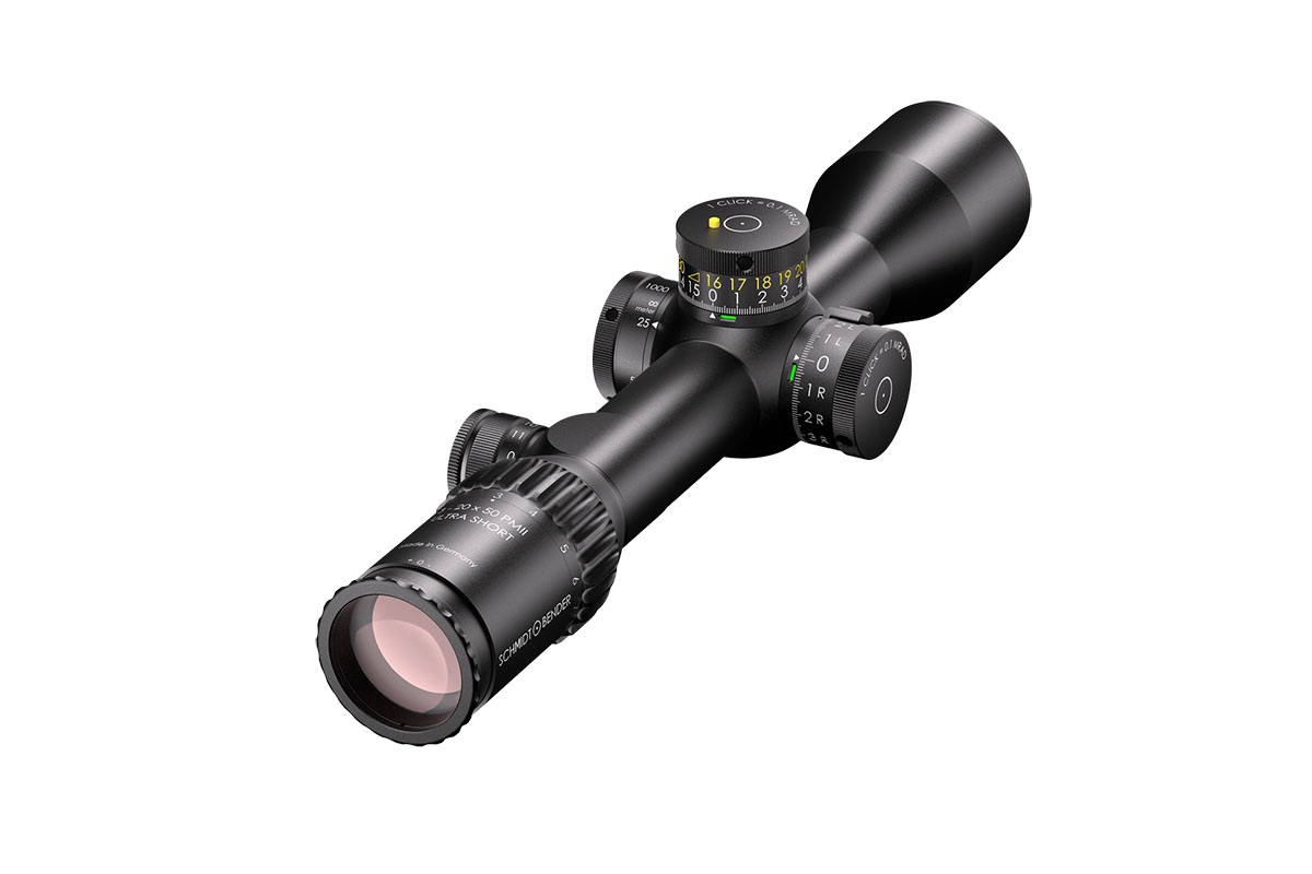 4060537070958 The 3‑20×50 PM II Ultra Short from Schmidt and Bender is a compact yet powerful riflescope engineered for high-performance engagements across medium to long distances. With its 3–20× magnification range and a 50 mm objective lens, it offers outstanding optical clarity and flexibility in a streamlined form factor. Constructed around a robust 34 mm main tube, it maintains a length of approximately 340 mm and weighs around 900 g, striking an excellent balance between size and performance—ideal for mounting on compact platforms without compromising optics. Its field of view spans roughly 13.0–2.1 m at 100 m, providing broad situational awareness at lower magnification and refined detail at the high end. The exit pupil ranges around 11.4–2.5 mm, and the eye relief is approximately 90 mm, supporting comfortable shooting in varied positions while maintaining strong light-gathering even as light fades. Advanced features include first focal plane (FFP) illuminated reticle options, side parallax adjustment (from approx. 25 m to infinity), and a low-profile elevation turret optimized for tactical precision. Key Specifications: Magnification: 3–20× Objective Lens Diameter: 50 mm Main Tube Diameter: 34 mm Field of View: approx. 13.0–2.1 m @100 m Exit Pupil: approx. 11.4–2.5 mm Eye Relief: approx. 90 mm Length: approx. 340 mm Weight: approx. 900 g With precision optics, compact build, and rugged mechanical design, the 3‑20×50 PM II Ultra Short is built for serious shooters who demand premium performance in a versatile package.
