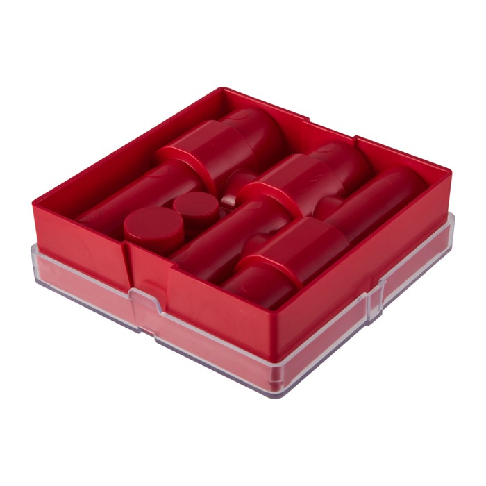 - Legen Sie die Dies in die vorgesehenen Fächer der Box. Achten Sie darauf, dass jede Die richtig sitzt und nicht über den Rand hinausragt.