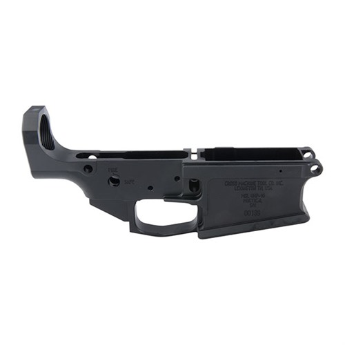 SPECS: 7075 T-6 billet aluminum, hardcoat anodized, matte black. .154" (3.9mm) diameter trigger & hammer pin holes in lower. Uses DPMS pattern parts.