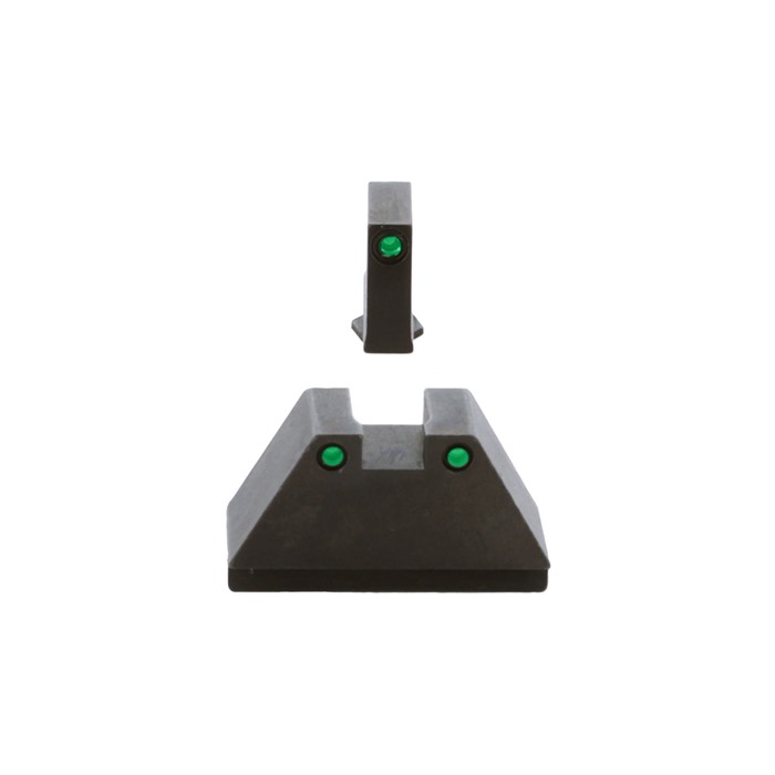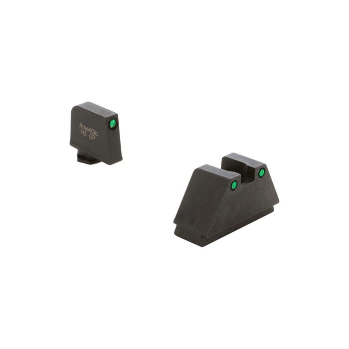 AMERIGLO® Optic Compatible sets provide a precise, elevated co-witness sight picture for slide-mounted red dot optics and serve as reliable back-up sights. These 3XL height sights from Ameriglo are optimized for the Glock Gen4/5 MOS Slide for use with Holosun 407C/507C/508T, Trijicon, RMR®/RMR HD®, RCR®/SRO®, EOTech EFLX optics. These sights will allow for use through the optic window. SPECS Fits Make: Glock® Fits Model: All Glock MOS Models (excluding 42, 43, 48) Size: 3XL Fits MOS Slide: Yes Front Sight Style: Tritium Front Sight Finish: Case Hardened Front Tritium Color: Green Front Outline Color: White Front Blade Width: 0.125 in. (3.18mm) Front Blade Height: 0.365 in. (9.27mm) Rear Sight Style: 2-Dot Tritium Rear Notch Shape: Square Rear Sight Finish: Case Hardened Rear Tritium Color: Green Rear Outline Color: White, Black Rear Blade Height: 0.371 in. (9.42mm) Overall Rear Height: 0.451 in. (11.46mm) Rear Notch Width: 0.15 in. (3.81mm) SIZE SPECS 1L: Front Height: .220” / Rear Height: .295” 2L: Front Height: .240” / Rear Height .315” 5L: Front Height: .300” / Rear Height: .375” XL: Front Height: .315” / Rear Height: .394” 2XL: Front Height: .350” / Rear Height: .429” 3XL: Front Height: .365” / Rear Height: .451” 5XL: Front Height: .407” / Rear Height: .507”