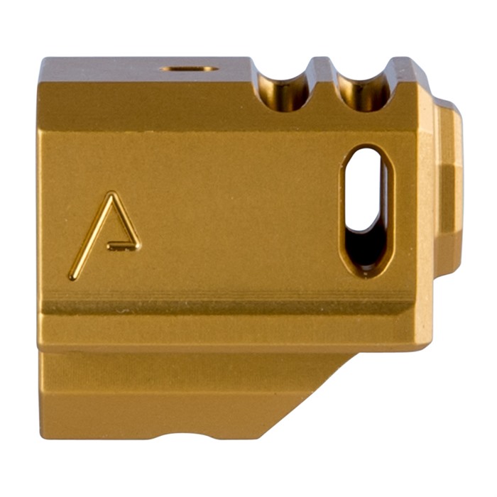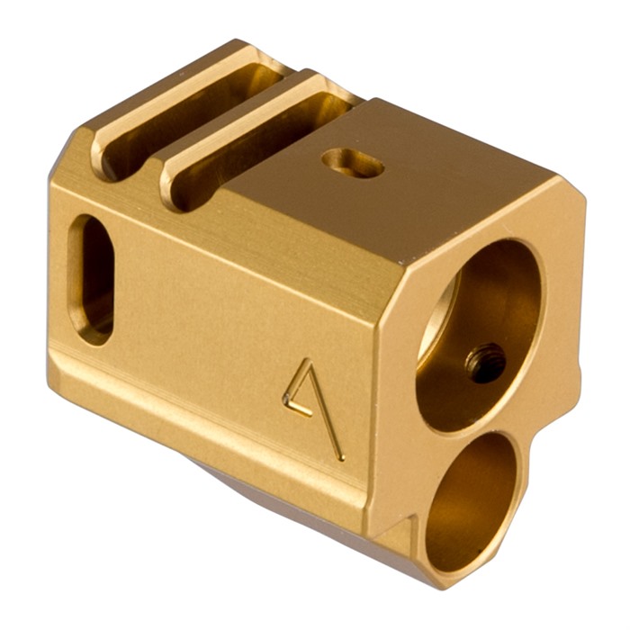 Der 417 Compensator ist aus 7075 Aluminium gefräst und passt auf alle Modelle der Glock G17, G19 und G34 der Gen 3 und Gen 4. Das Mündungsgerät verfügt über ein zwei-Kammer-Design, das zwei vertikale Ports sowie zwei seitliche Ventilationsports umfasst. Es sind Optionen in schwarz und gold erhältlich.