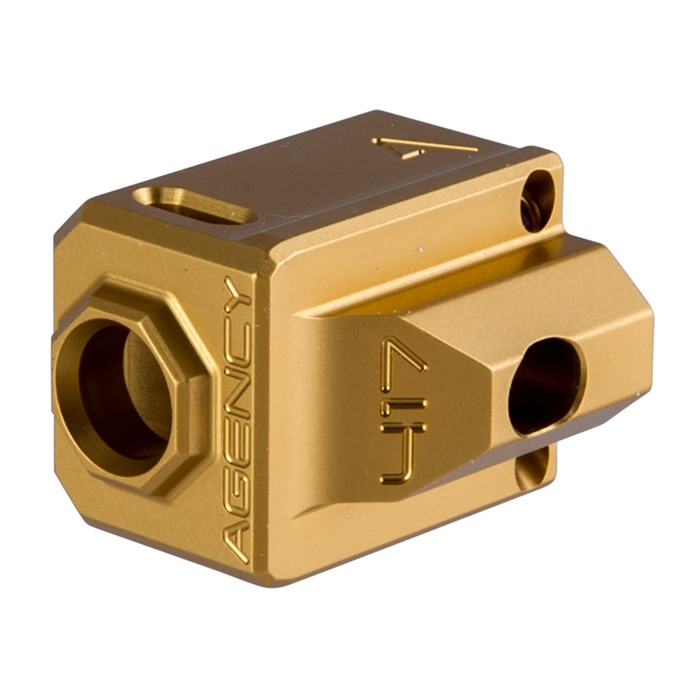 Für die Installation wird der Agency Arms 417 Compensator mit den benötigten Set-Schrauben geliefert, und du kannst deine OEM-Rückholfederanordnung weiterhin verwenden. Das Gerät benötigt einen gewindeten Lauf mit einem 1/2-28 TPI Gewinde. Ein weiteres besonderes Merkmal des Agency Arms 417 Compensators ist ein gefrästes Loch, das mit allen Glock-Visierungen kompatibel ist, sodass du deinen Sichtbereich verbessern kannst.