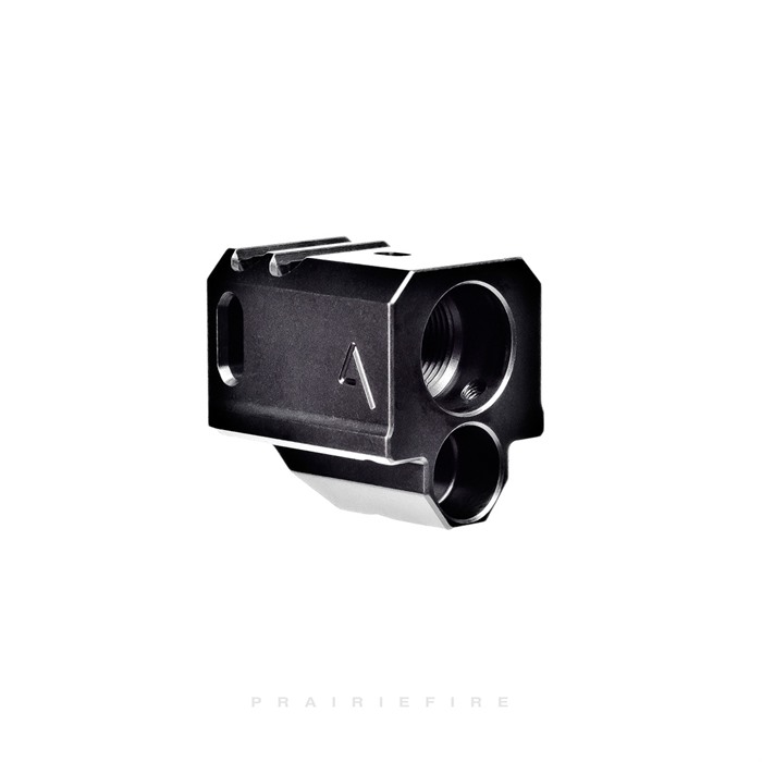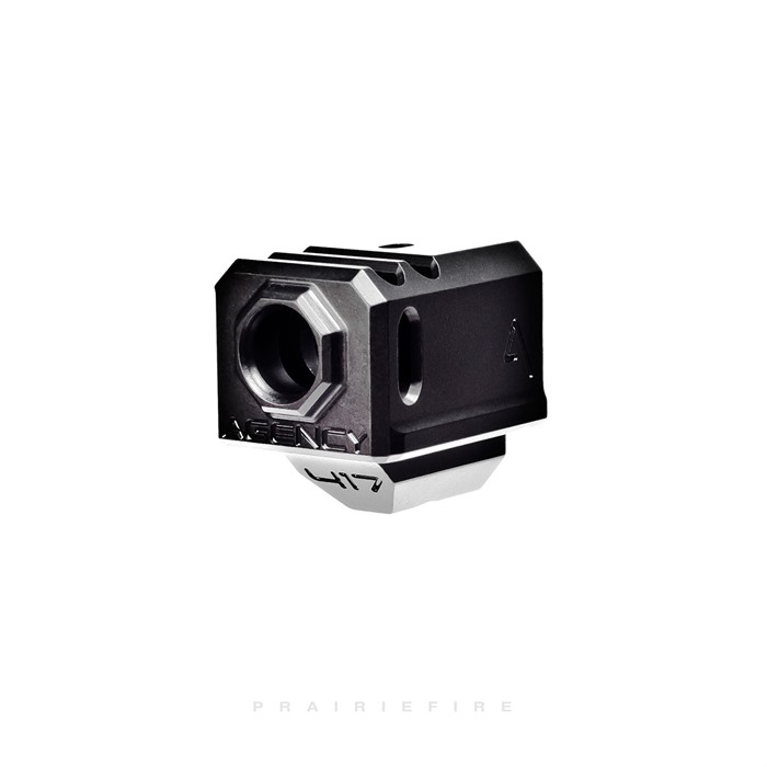 Der Agency Arms 417 Compensator wurde speziell entwickelt, um Erleichterung vom gefühlten Rückstoß zu bieten. Jeder Agency Arms Glock G43 417 Compensator passt auf alle Gewindeläufe mit einem Standard-Gewindemaß von 1/2-28 TPI. Das Design des Kompensators verfügt über zwei vertikale Gasöffnungen und zwei seitliche Öffnungen, die sowohl den Rückstoß als auch den Mündungsaufschub reduzieren.