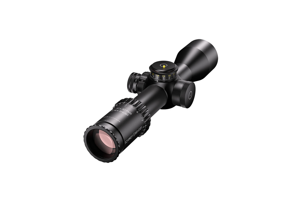 4060537063776 The 3‑20×50 PM II Ultra Short from Schmidt and Bender is a compact yet powerful riflescope engineered for high-performance engagements across medium to long distances. With its 3–20× magnification range and a 50 mm objective lens, it offers outstanding optical clarity and flexibility in a streamlined form factor. Constructed around a robust 34 mm main tube, it maintains a length of approximately 340 mm and weighs around 900 g, striking an excellent balance between size and performance—ideal for mounting on compact platforms without compromising optics. Its field of view spans roughly 13.0–2.1 m at 100 m, providing broad situational awareness at lower magnification and refined detail at the high end. The exit pupil ranges around 11.4–2.5 mm, and the eye relief is approximately 90 mm, supporting comfortable shooting in varied positions while maintaining strong light-gathering even as light fades. Advanced features include first focal plane (FFP) illuminated reticle options, side parallax adjustment (from approx. 25 m to infinity), and a low-profile elevation turret optimized for tactical precision. Key Specifications: Magnification: 3–20× Objective Lens Diameter: 50 mm Main Tube Diameter: 34 mm Field of View: approx. 13.0–2.1 m @100 m Exit Pupil: approx. 11.4–2.5 mm Eye Relief: approx. 90 mm Length: approx. 340 mm Weight: approx. 900 g With precision optics, compact build, and rugged mechanical design, the 3‑20×50 PM II Ultra Short is built for serious shooters who demand premium performance in a versatile package.
