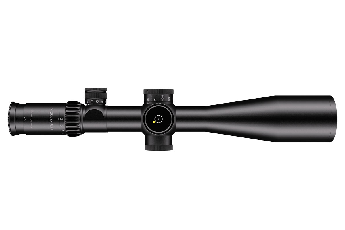 4060537065343 The 5‑25×56 PM II from Schmidt and Bender stands at the pinnacle of variable‑magnification tactical optics, engineered for long‑range precision, outstanding clarity and professional‑level reliability. With a wide 5–25× zoom range and a substantial 56 mm objective lens, it delivers exceptional light‑gathering capability, enabling crisp, bright imagery even at extended distances. Built upon a rugged 34 mm main tube, the scope accommodates large internal adjustment ranges and is designed for demanding use. It features a reticle in the first focal plane (FFP) so that scale and hold‑offs remain accurate at any magnification. The field of view spans approximately 5.3–1.5 m at 100 m, while the exit pupil ranges around 11.0–2.3 mm, and the eye relief remains generous at around 90 mm. The parallax adjustment typically extends from 10 m to infinity, enabling accurate focus from very close ranges through to extreme distances. The turret system is engineered for precision: click values as fine as 0.1 mrad (≈1 cm at 100 m) are available, and a double‑turn elevation turret combined with single‑turn windage allows vast usable correction ranges for wind and elevation. Optical transmission exceeds 90 %, and the construction is nitrogen‑filled, fog‑ and waterproof, ensuring full reliability in all climatic conditions. Key Specifications: Magnification: 5–25× Objective Lens Diameter: 56 mm Main Tube Diameter: 34 mm Field of View: approx. 5.3–1.5 m @100 m Exit Pupil: approx. 11.0–2.3 mm Eye Relief: approx. 90 mm Parallax Adjustment: from ~10 m to infinity Click Value: approx. 0.1 mrad (≈1 cm at 100 m) Optical Transmission: > 90 % Crafted in Germany to the highest standards, the 5‑25×56 PM II is the go‑to choice for military, law‑enforcement and competition shooters who demand absolute clarity, mechanical integrity and extreme flexibility in one optic.