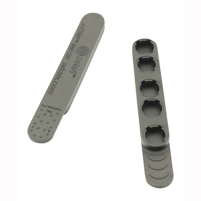 The J-STRIP™ is designed specifically to fit 5-shot J-frame size revolvers. Correct 2-2-1 cartridge spacing of this speed strip ensures real fit with most 5-shot J-frame sizes including: S&W, Taurus, Rossi and Charter Arms (older models). The J-STRIP™ works well with any grip size to load two cartridges at a time. Great for concealed carry. The J-STRIP™ fits flat in pockets of shirts, pants, vests and jackets. The J-STRIP™ works well with all bullet types including wadcutter and Federal HST +P Micro ammunition. Made from tough BPA, BPS, BPF free polyurethane material for use in both hot and cold environments. The Zeta6™ J-STRIP™ Speed Loader will fit the following revolvers fitted with any style grip: S&W® 36, 37, 38, 40, 42, 49, 60, 337, 340, 342, 360, 437, 442, 637, 638, 640, 642, 649, M&P Bodyguard 38 Taurus™ 85, 605, 650, 651, 850, 851 (will not fit Taurus 85 Poly or Taurus Model 856) Rossi® 68, 88, 351, 352 Ruger® SP101 (will not fit well in the Ruger LCR)