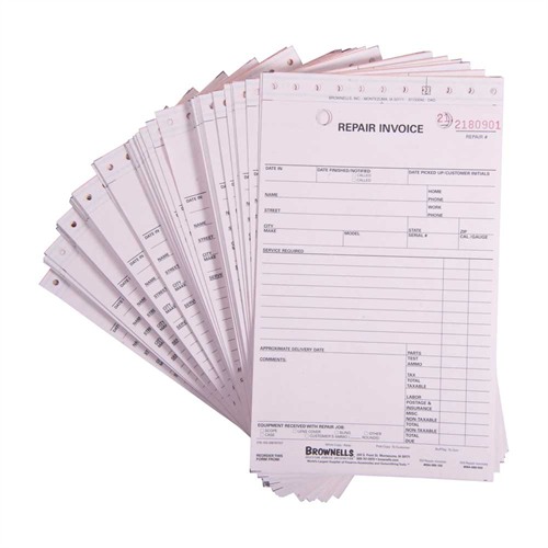 Entdecke die vielseitigen REPAIR LOG BOOKS und REPAIR LOG INVOICE FORMS von BROWNELLS. Diese speziell von Gunsmiths entwickelten Formulare helfen dir, eingehende Reparaturen zu dokumentieren und den Abrechnungsprozess im Blick zu behalten.