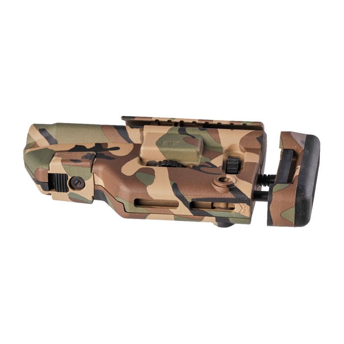 Interested in a precision rifle stock that isn't the bulky, fixed-stock options that dominate the market? The B5 Systems Collapsible Precision Stock provides a solid mounting point for accurate shooting, but this precision-rifle stock can still be easily adjusted or downsized for easy storage and transport. Additional features found on the B5 System Collapsible Precision Stock include an ambidextrous quick-detach sling-swivel socket with limited rotation, as well as a number of fixed sling mounts. The stock also features an adjustment lever complete with a lockable feature, as well as an M-LOK attachment point on the underside of the stock that's compatible with Picatinny rail sections or even a direct-attach, M-LOK monopod. Available color options on this B5 Systems Collapsible Precision Stock are black, flat dark earth, coyote brown, foliage green, olive drab, gray, multicam and woodland.