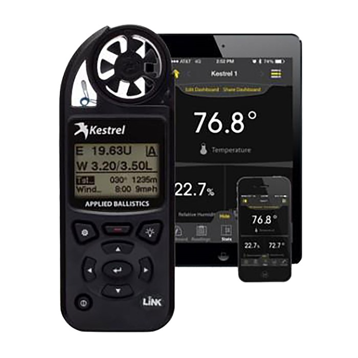 Er wird auch über LiNK mit einem Bushnell CONX Entfernungsmesser verbunden, sodass du die Ergebnisse vom AB Kestrel direkt auf deinem Entfernungsmesser sehen kannst. Wenn du das letzte Quäntchen Leistung aus deinem Gewehr und deiner Munition herausholen möchtest, stelle sicher, dass du beim nächsten Besuch auf dem Schießstand einen Kestrel 5700 Elite mit Applied Ballistics Software dabei hast.