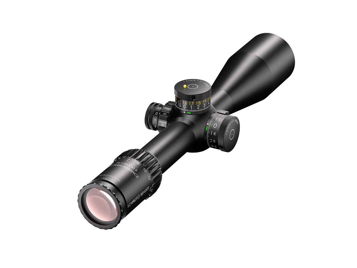 4060537070484 The 6‑36×56 CM II High Performance from Schmidt and Bender is a high-end precision riflescope engineered for medium to extreme long-range engagement. With a magnification range of 6–36× and a large 56 mm objective lens, it delivers outstanding clarity, resolution, and flexibility across demanding shooting scenarios. Its optical design provides an exceptionally large field of view for a scope in this class — even at the lowest magnification (6×), it outperforms many 5–25× scopes in terms of visual coverage. Advanced coatings ensure light transmission well over 90 %, enabling superb image brightness and contrast in challenging lighting conditions. Built on a 34 mm main tube, the scope is compact yet robust, with a length of approximately 390 mm and weight around 940 to 995 g, depending on configuration. Eye relief is generous at 90 mm, ensuring comfortable and safe use across rifle platforms. The turret system offers very large internal adjustment ranges (over 40 mrad, approx. 395 cm elevation at 100 m) and fine click values (e.g., 0.5 cm/100 m), making it well suited for precision ballistic correction at long distances. Side parallax adjustment and the integrated LPI system (illumination integrated into the parallax knob) enhance ease of use and compatibility for left-hand shooters. Key Specifications: Magnification: 6–36× Objective Lens Diameter: 56 mm Main Tube Diameter: 34 mm Field of View (approx.): 7.3–1.3 m @100 m Exit Pupil: approx. 8.3–1.6 mm Eye Relief: 90 mm Click Value: approx. 0.5 cm @100 m (configuration-dependent) Internal Elevation Adjustment: approx. 395 cm @100 m Weight: approx. 940–995 g Transmission: >90 % Tube Diameter: 34 mm Length: approx. 390 mm Reticle and Turret Configurations: Various high-end match/tactical setups available This scope is designed for marksmen, competition shooters, and professionals who demand the highest optical clarity, mechanical robustness, and long-range capability from one flagship optic.