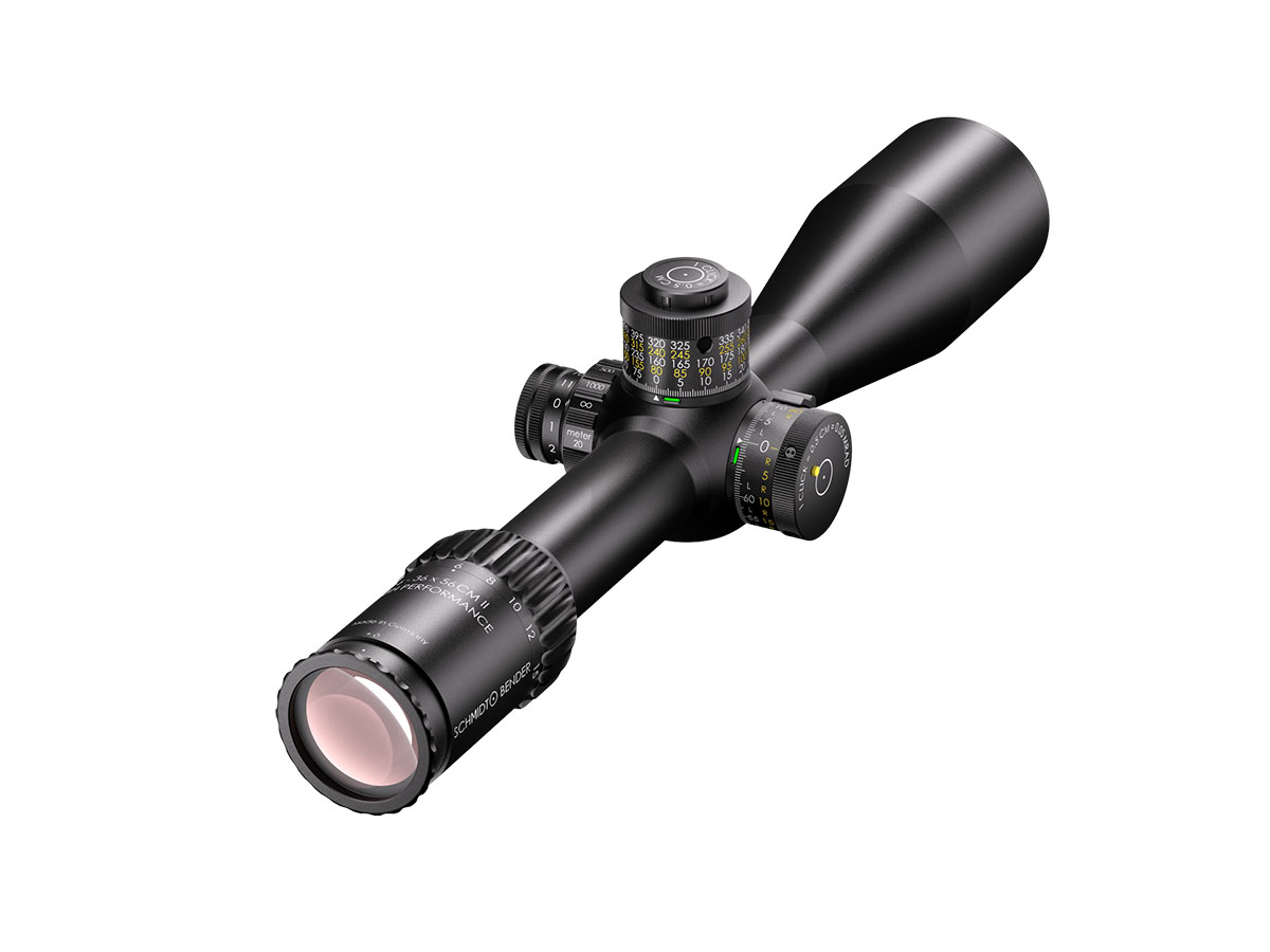 4060537070552 The 6‑36×56 CM II High Performance from Schmidt and Bender is a high-end precision riflescope engineered for medium to extreme long-range engagement. With a magnification range of 6–36× and a large 56 mm objective lens, it delivers outstanding clarity, resolution, and flexibility across demanding shooting scenarios. Its optical design provides an exceptionally large field of view for a scope in this class — even at the lowest magnification (6×), it outperforms many 5–25× scopes in terms of visual coverage. Advanced coatings ensure light transmission well over 90 %, enabling superb image brightness and contrast in challenging lighting conditions. Built on a 34 mm main tube, the scope is compact yet robust, with a length of approximately 390 mm and weight around 940 to 995 g, depending on configuration. Eye relief is generous at 90 mm, ensuring comfortable and safe use across rifle platforms. The turret system offers very large internal adjustment ranges (over 40 mrad, approx. 395 cm elevation at 100 m) and fine click values (e.g., 0.5 cm/100 m), making it well suited for precision ballistic correction at long distances. Side parallax adjustment and the integrated LPI system (illumination integrated into the parallax knob) enhance ease of use and compatibility for left-hand shooters. Key Specifications: Magnification: 6–36× Objective Lens Diameter: 56 mm Main Tube Diameter: 34 mm Field of View (approx.): 7.3–1.3 m @100 m Exit Pupil: approx. 8.3–1.6 mm Eye Relief: 90 mm Click Value: approx. 0.5 cm @100 m (configuration-dependent) Internal Elevation Adjustment: approx. 395 cm @100 m Weight: approx. 940–995 g Transmission: >90 % Tube Diameter: 34 mm Length: approx. 390 mm Reticle and Turret Configurations: Various high-end match/tactical setups available This scope is designed for marksmen, competition shooters, and professionals who demand the highest optical clarity, mechanical robustness, and long-range capability from one flagship optic.