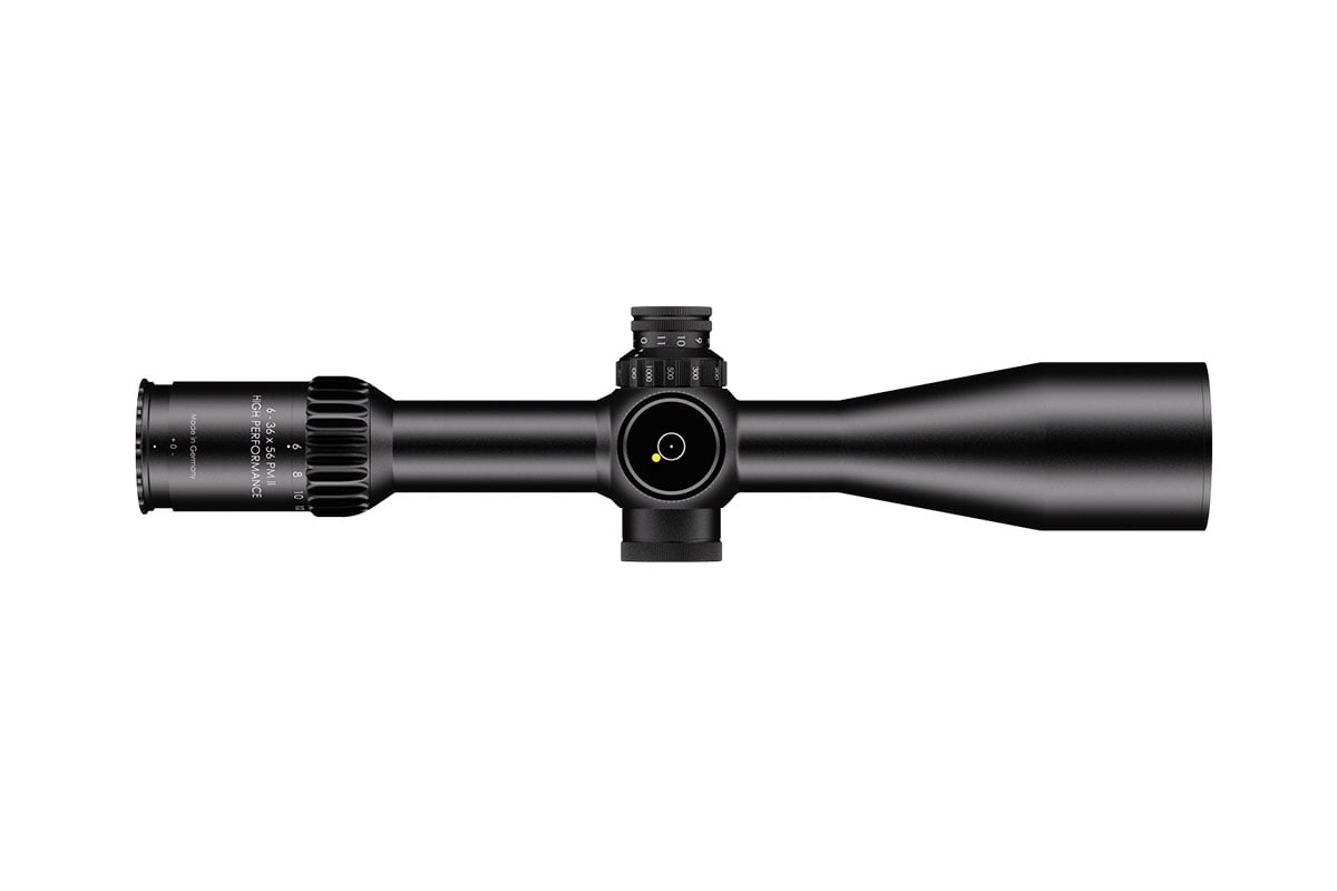 4060537069709 The 6‑36×56 PM II High Performance from Schmidt and Bender is a benchmark optic engineered for serious medium‑ to extreme‑long‑range shooting. With its expansive 6–36× magnification range and a generous 56 mm objective lens, it delivers exceptional clarity, reach and flexibility for demanding applications. Crafted on a robust 34 mm main tube, the scope is compact in length (approx. 390 mm) and relatively light for its class (around 940 g), yet built with the ruggedness and precision befitting the PM II series. The first‑focal‑plane (FFP) reticle ensures accurate hold‑overs, ranging and subtensions at every magnification level. With a transmission rating of well over 90 %, the optical system offers bright, high‑resolution imagery critical for target recognition at extended distances. Its field of view spans about 7.3–1.3 m @100 m, and the exit pupil ranges from approximately 8.3–1.6 mm, providing both wide situational awareness at lower magnification and finely‑detailed views at higher zoom levels. The eye relief is approximately 90 mm, ensuring comfortable viewing across shooting positions. The turret system features ultra‑fine 0.1 mrad click values, and the internal adjustment ranges exceed 40 mrad, giving the shooter a massive envelope for elevation and windage correction. The scope’s innovative “LPI” (Illuminated‑Parallax‑Integrated) system enhances usability, including left‑hand shooter compatibility and more mounting flexibility. Key Specifications: Magnification: 6–36× Objective Lens Diameter: 56 mm Main Tube Diameter: 34 mm Field of View: approx. 7.3–1.3 m @100 m Exit Pupil: approx. 8.3–1.6 mm Eye Relief: approx. 90 mm Transmission: >90% Click Value: ~0.1 mrad Length: approx. 390 mm Weight: approx. 940 g Designed and manufactured in Germany with highest precision, the 6‑36×56 PM II High Performance is ideal for professionals, competition marksmen or hunters seeking top‑tier optical clarity, mechanical integrity and flexibility across distances that demand elite performance.