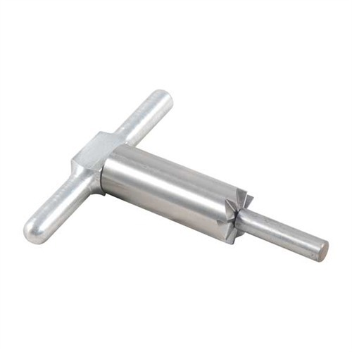 Dieser gehärtete Stahl, 90° Facing Cutter sorgt dafür, dass die Mündung nach dem Kürzen perfekt gerade ist. Du kannst ihn auch verwenden, um Dellen und Schäden zu reparieren. Im Lieferumfang enthalten sind ein Handgriff und ein Pilot, alles verpackt in einer Polypropylen-Box. Der austauschbare Pilot sorgt dafür, dass der Cutter richtig ausgerichtet bleibt. Kaufe zusätzliche Piloten, um mit einem Cutter für viele verschiedene Kaliber arbeiten zu können. Piloten für andere Kaliber sind separat erhältlich.