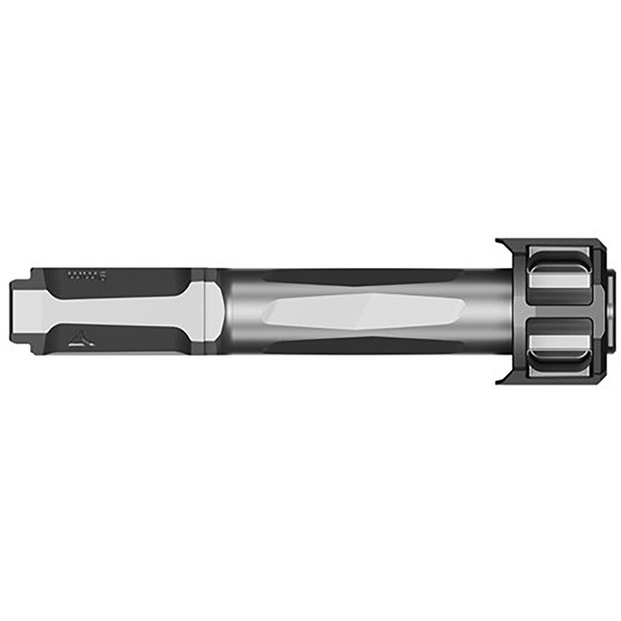 The Radian® AFTERBURNER™ + RAMJET™ combo provide unprecedented recoil reduction and match grade accuracy in a concealed carry package. The threadless barrel design allows for effortless install/removal for cleaning, while LEGAL FOR SALE IN ALL 50 STATES*. The AFTERBURNER™ compensator is machined from hardened stainless steel and the RAMJETTM barrel from hardened 416R SS; both are enhanced with a Radianite Black coating. This combination achieves low friction, high hardness, and high corrosion resistance, making overall durability and erosion from muzzle blast a non-issue. Angled front faces on the AFTERBURNER™ aid in holstering. The INTRA-LOK® mounting system uses the taper lock principle; a tapered locking screw interfaces with an angled V-groove on the underside of the barrel. This perfectly times the compensator as it locks down onto the upper barrel profile on the muzzle end of the barrel. INTRA-LOK® allows the user to simply slide the compensator over the barrel, insert and tighten the locking screw, making for a simple and repeatable installation process. This system allows the user to easily remove the barrel from the slide for cleaning. FEATURES AFTERBURNER™ Hardened SS RAMJET™ Hardened 416R SS atch Grade Barrel Gas Sealing Chamber Loaded Chamber Indicator