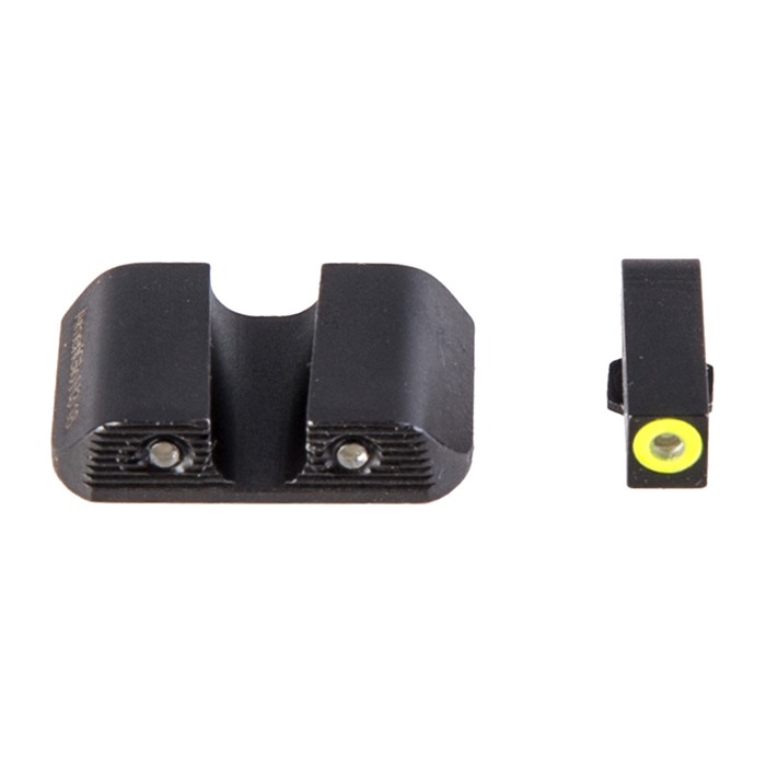 The standard-issue night sight set for the FBI and US Marshals! AmeriGlo’s Agent night sight set for Glock® is a major step forward in night sight design that delivers improved visibility and faster sight acquisition in any lighting conditions. These are low-profile, fixed sights designed to meet the daily carry needs of law enforcement officers. AmeriGlo Agent sights for Glock® employ the proven 3-dot configuration preferred by many experienced shooters. The ProGlo style front blade has a vivid green Tritium lamp surrounded by a bright orange outline, so there’s no trouble identifying your front sight under stress. The fixed rear sight has a rounded U-notch flanked by two green Tritium lamps with subdued black outlines. Drop-in replacements for factory sights Swiss-made self-illuminating Tritium lamps are backed by a 12-year warranty Rear U-notch (all): .165" wide Front sights: .140" wide (G42,43 is .125" Wide) Glock® 9mm/.40 S&W/.357 SIG front: .180" high Glock® 10mm/.45 ACP front: .165" high Glock® 42/43 front: .190" high Gen5 sights fit all models of Glock Gen5 pistols ONLY (front: .200" high) AmeriGlo Agent night sights are machined from high-grade steel barstock, dehorned to prevent snagging on your clothing during the draw, and given a durable, non-reflective black finish to match your Glock’s slide. Even so, the rear sight body is shaped to support one-handed slide racking in an emergency.