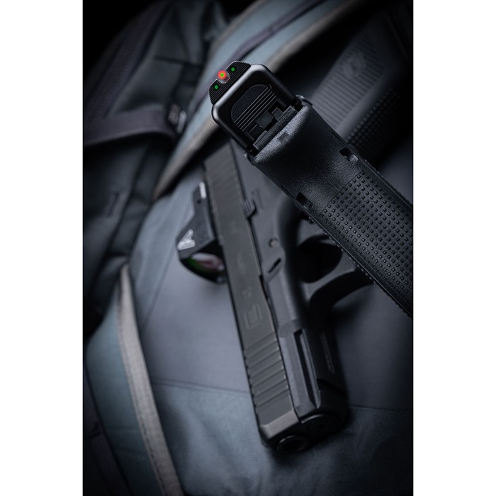 - Die ProGlo-Stil Frontklinge hat eine lebendige grüne Tritiumlampe, umgeben von einem hellen orangen Rand, sodass Du Deine Frontvisierung unter Stress problemlos identifizieren kannst.