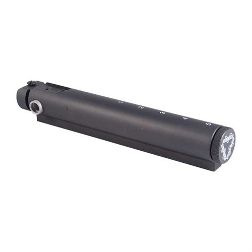 - Stelle die Schulterstütze auf die gewünschte Länge ein, indem du den Entriegelungsstift drückst und sie in eine der fünf Verriegelungspositionen schiebst.