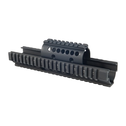 SPECS: 6061 T6 aluminum, hardcoat anodized, Black. 6" (15.2cm) long, 2-1⁄8" (5.3cm) wide. 10 oz. (280g) weight. Includes mounting hardware, Allen wrenches, thread locking compound, and instructions. Installation requires field stripping. Fits most AK-47/74 variants with stamped or milled receivers.