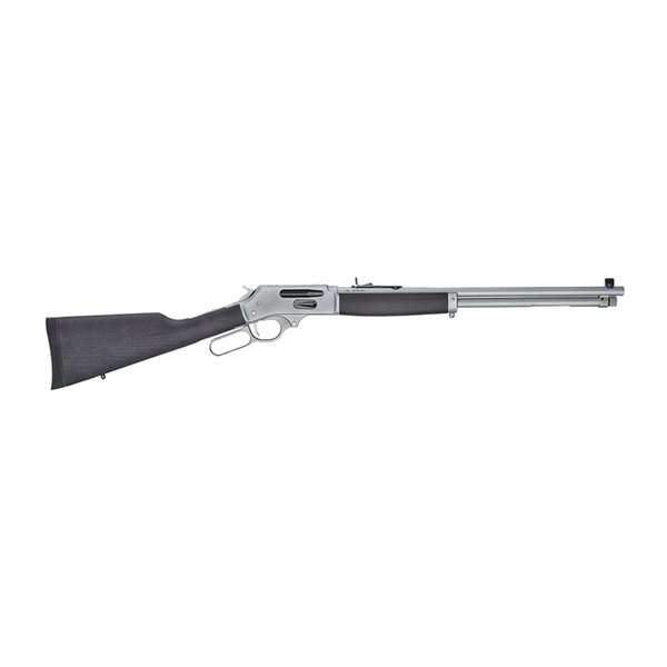 Henry does produce, hands down, some of the best-looking lever action rifles on the market in our brass and silver models, but as a part of our aggressive expansion into the more utilitarian side of life with rifles and shotguns meant for everyday life in the truck, on the farm, and through the woods, these hard-working All-Weather rifles became a must-have. In profile and general dimensions, these two Henry offerings are essentially the same as their blued steel counterparts, with 20” round barrel and 5-shot magazine capacity in the .30-30 and 18.43” round barrel with 4-shot magazine in the .45-70, and both with the same adjustable buckhorn/bead sights. Like the blued rifles, the All-Weathers also wear the same wrist profiles- straight in the .30-30, and pistol grip in the .45-70. The major differences lie in the hard chrome plating on all metal surfaces (except springs, sights, and loading gates), and a durable industrial-grade coating on the hardwood furniture. In a tough world where a working rifle might be “rode hard and put away wet”, this is the finish you want on it. A very strong plating permanently bonded to the steel underneath, hard chrome doesn’t flake, chip, or peel, and its corrosion resistance is actually stronger than some stainless steel. The treatment we use increases surface hardness, reduces friction on moving parts, doesn’t normally scuff or scratch, and leaves a low-gloss look that won’t spook game. The furniture is another departure for us; we’ve based a good part of our reputation on our select American walnut over the years, but here we’ve opted for a stained hardwood with a carefully-selected coating that’s formulated to stand up to wear, tear, scratches, moisture, temperature variations, and the angst of the various “character marks” an everyday outdoor tool inevitably picks up during its lifetime. If you want beauty, we’ve got it. If you want a more subdued partner you can depend on to ride any trail with, any time, any season, and in any weather, we do that too.