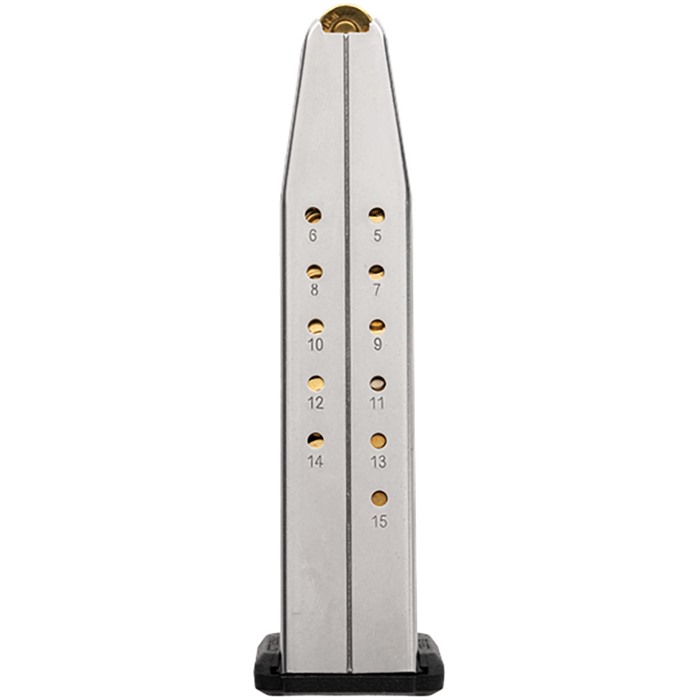 Das AMAG 15 SG9 ist ein 15-Schuss 9mm Magazin, das für SIG P320 Compact Handfeuerwaffen entwickelt wurde. Es verfügt über einen Körper aus rostfreiem Stahl mit Polymer-Unterkomponenten. Das AMAG 15 SG9 beinhaltet viele unserer Fortschritte im Magazin-Design.
