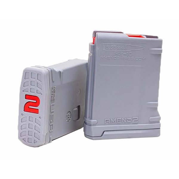 The Amend2® 10 round magazine is a sturdy, reliable 5.56x45 NATO (.223 Remington) AR15/M4/M16 magazine made of advance polymer material. It is a light, durable and excellent alternative to the standard M4/M16 USGI aluminum magazine. The 10 round body profile is ideal for hunting, bench shooting or the various states where capacities are limited by law. The magazine comes in a variety of colors including Black, Flat Dark Earth, OD Green and Gray. FEATURES: Sturdy Impact resistance polymer with textured grip Anti-tilt super follower Heavy duty, non-memory, and non-corrosive stainless steel spring Made in the U.S.A. Material able to cerakote