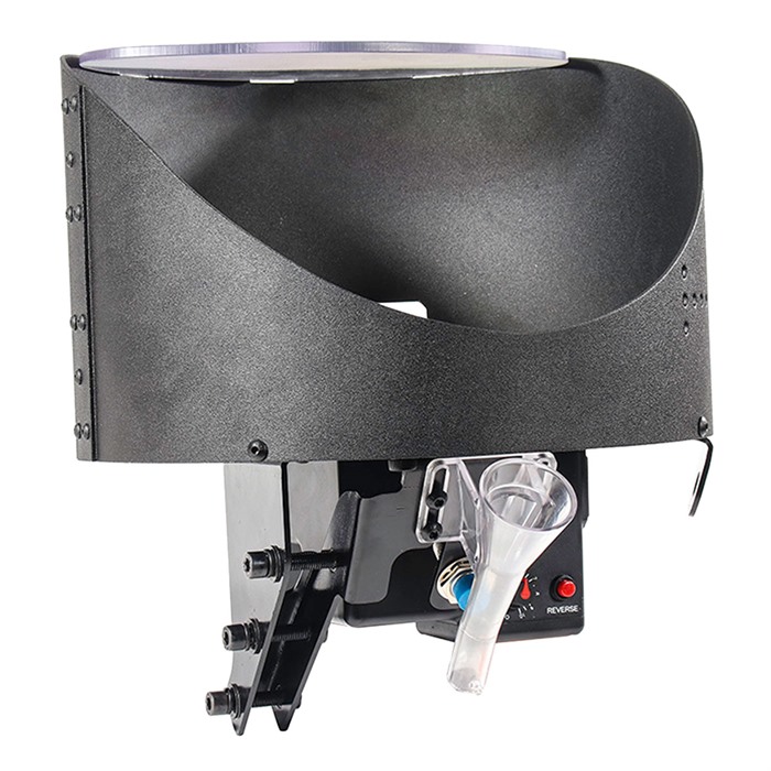 "MARK 7 11” High Speed Case Feeder Apex 10 Small Pistol Mark 7’s new 11” High Speed Case Feeder is designed to handle the demanding speeds of our Autodrive units, but also works great on hand operated progressive presses. The 11” Case Feeder offers commercial grade performance and has innovative features to make your loading operations smooth and easy. We started with all metal construction for strength and durability and added a variable speed DC motor which can be fine turned for your specific application. An advanced and reliable proximity switch controls the flow of cases to the press. Our unique bowl design has a trap door which makes it easy to remove cases as well as an adjustable funnel to handle most calibers. The Case Feeder also features a quick detach funnel adapter for easy removal and installation. Two versions are available: Mount directly to your Apex10 press or Universal mount which attaches to your bench, just where you need it. All metal construction for strength and durability 11” bowl equipped with trap door for easy case removal Variable speed motor can be fine-tuned to your desired speed Automatic advanced proximity on/off switch controls case feeding Quick detach funnel adapter Reverse button to easily clear feeding issues Pole is available for Apex 10/Evolution or Universal Pole to fit most competitive models Available with small or large pistol, or small or large rifle caliber plates