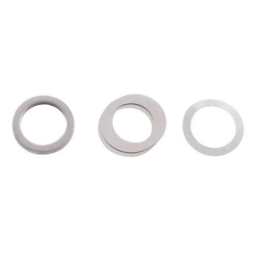 Der große (dicke) Shim ermöglicht eine Drehung von 90° und kann als Abstandshalter für Läufe verwendet werden, die hinter den Gewinden keinen Reliefschnitt haben. Mittlere Shimms bieten etwa 45° Drehung, während kleine Shimms in Kombination mit großen und mittleren Shimms für fein abgestimmte, kritische Ausrichtungen sorgen.
