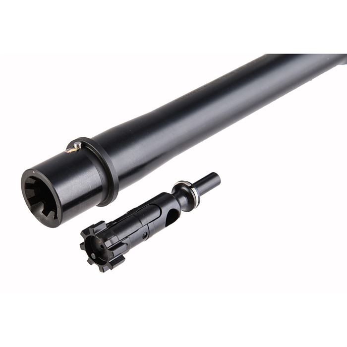 Der Brownells .450 Bushmaster AR-15 Lauf verfügt über ein button-rifled Design, das aus stressreliefiertem 4150 GBQ Mil-Spec Stahl gefertigt ist. Er verwendet ein gängiges .875-Zoll Gasblock Journal, das mit vielen Aftermarket-Komponenten kompatibel ist.