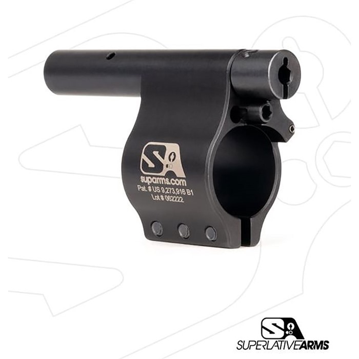 SUPERLATIVE ARMS LLC AR-15 ADJUSTABLE PISTON SYSTEM W/CLAMP ON .750" BLOCK RIGHT HAND The Superlative Arms Patented Bleed Off® Mode, gas piston system for the AR-15 platform adjusts the gas flow by bleeding the gas out the front of the block instead of restricting the flow like conventional adjustable blocks. RESULTS: The pressure used in the block is reduced only to the amount required to drive the bolt carrier. The remaining gas and pressure are bled out of the block allowing the system to run much cleaner and cooler. Reduction of wear on the bolt carrier group components and upper receiver. Reduction of felt recoil allowing for faster follow-up shots. Patented adjustment detent is located outside of the block and therefore no contamination. In Bleed Off Mode the gas adjustment screw does not restrict the gas flow; therefore, there is no erosion or seizing of the screw, and no loss of detent due to carbon build up. Although it is removable, we have added a safety mechanism, which stops you from unintentionally backing the screw all the way out. When using SBR’s and/or suppressors the Bleed Off port allows the excessive pressure to be exhausted out of the block reducing blow back. NOTE: The Superlative Arms Piston Kit does not come with a Bolt Assembly (bolt, cam pin, firing pin, or firing pin retainer). Bolt Assembly sold separately. ***NOTICE: PRIOR TO PURCHASING THIS PRODUCT*** Please review the barrel schematic for the critical dimensions necessary to safely operate the pistol length piston system. There is no industry standard for the distance between the barrel extension to the center of the gas hole. This is critical for the op rod length. If it is not the same distance as stated on the schematic, you may bend the op rod. THIS PRODUCT IS NOT RATED FOR 300 BLK!!! SPECIFICATIONS: Piston Systems: Piston Kits Gas Block Size: .750 Gas Block Style: Clamp On Gas System Length: Pistol Carrier Type: Full-Auto, AR-15 Carrier Finish: Dark DLC