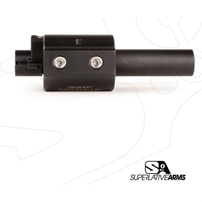 AR-15 ADJUSTABLE PISTON SYSTEM W/0.625" GAS BLOCK LEFT HAND The Superlative Arms Patented Bleed Off® Mode, gas piston system for the AR-15 platform adjusts the gas flow by bleeding the gas out the front of the block instead of restricting the flow like conventional adjustable blocks. RESULTS: The pressure used in the block is reduced only to the amount required to drive the bolt carrier. The remaining gas and pressure are bled out of the block allowing the system to run much cleaner and cooler. Reduction of wear on the bolt carrier group components and upper receiver. Reduction of felt recoil allowing for faster follow-up shots. Patented adjustment detent is located outside of the block and therefore no contamination. In Bleed Off Mode the gas adjustment screw does not restrict the gas flow; therefore, there is no erosion or seizing of the screw, and no loss of detent due to carbon build up. Although it is removable, we have added a safety mechanism, which stops you from unintentionally backing the screw all the way out. When using SBR’s and/or suppressors the Bleed Off port allows the excessive pressure to be exhausted out of the block reducing blow back. NOTE: The Superlative Arms Piston Kit does not come with a Bolt Assembly (bolt, cam pin, firing pin, or firing pin retainer). Bolt Assembly sold separately. SPECIFICATIONS: Piston Systems: Piston Kits Gas Block Size: .625 Gas Block Style: Solid, Set Screw Gas System Length: Carbine Carrier Type: Full-Auto, AR-15 Carrier Finish: Dark DLC