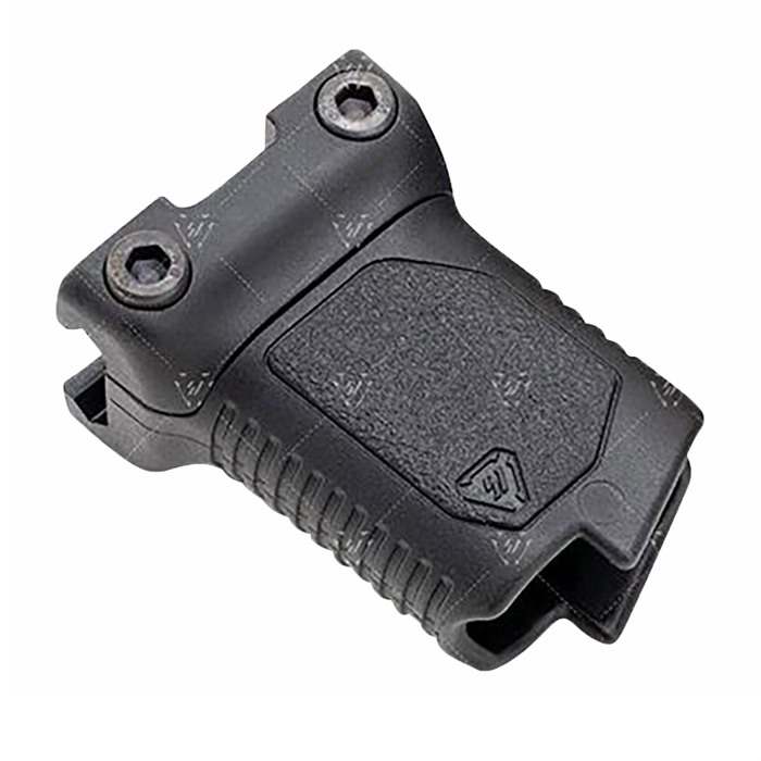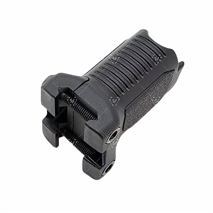 The Strike Industries Angled Vertical Grip with Cable Management (Picatinny) is engineered like no other grip on the market. The grip angle sits on the handguard at 86 degrees. The patent pending SI Cable Management System® (CMS) function enables you to organize and store excess wire from your weapon light or any other cabled accessories. Instead of tucking wire anywhere you can and using cable ties or tape to hold it down, the SI CMS will offer you a place to route and/or contain loose wire inside the grip cavity. The cuts at the top middle of the grip allow for easier pressure switch attachment. On both the Short and Long version there has an added built-in stability feature when you place the L-shaped bottom onto a table edge/corner or as a barricade stop, giving you another way to get back on target faster downrange. The Short version is a low-profile form helps to minimize snags. The forward angle provides more of a natural wrist angle and increased rigidity of forearm. Designed with textured palm and finger areas with flat sides for positive handling and easier manipulation of the firearm. Made from durable and lightweight polymer compatible with 1913 Picatinny rails, the Strike Industries Angled Vertical Grip with Cable Management gives the shooter control while handling or firing the weapon, added stability with table/edge corner or as a barricade stop and an innovative way to ensure total cable management. No messy wires.