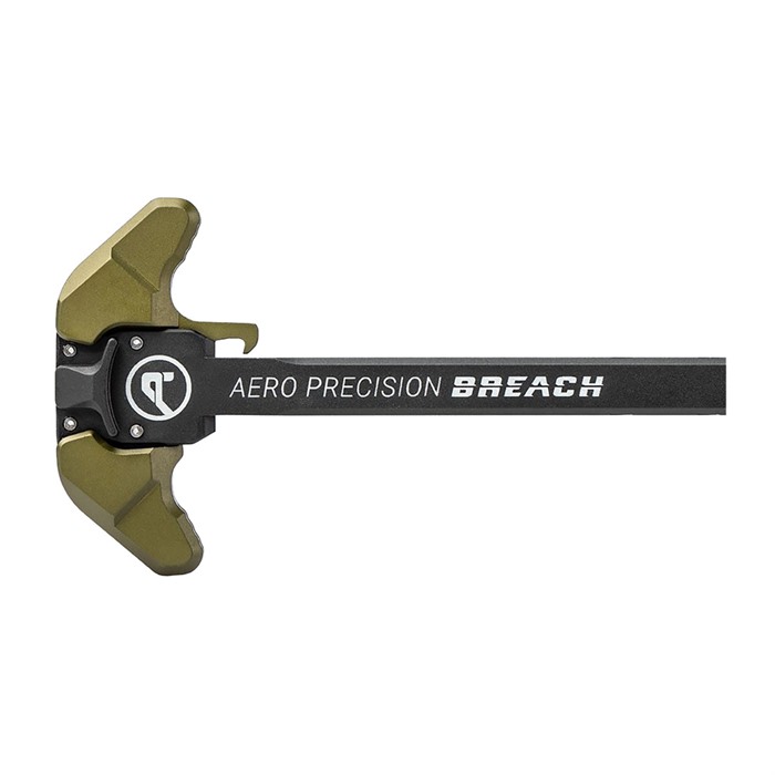 One of the most critical components on your AR-15 is the charging handle, since it gives you complete control over your gun's firing status. Because of that, you need a charging handle that's easy to use and durable, and Aero Precision has the perfect option in the form of its Breach Ambidextrous Charging Handle. Each Aero Precision Breach Charging Handle can be had in two different sizes, so you can choose the one that best meets your needs. The smaller of the two levers provides a sleek design that blends in with the overall lines of your rifle without creating any snag points, but it still provides a comfortable, ergonomic surface for easy racking. The larger of the two levers gives you more surface area for instant, easy activation of the lever, whether through rapid one-handed racking or other motions. The Aero Precision Breach Charging Handle is machined from 7075 aluminum and is treated with a hardcoat-anodized finish. Like all of Aero's products, this handle is made right here in the USA.