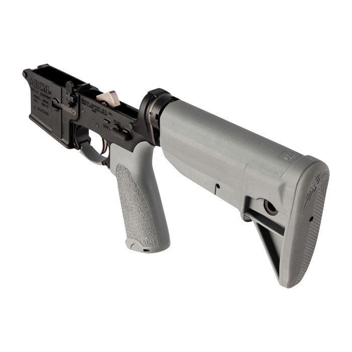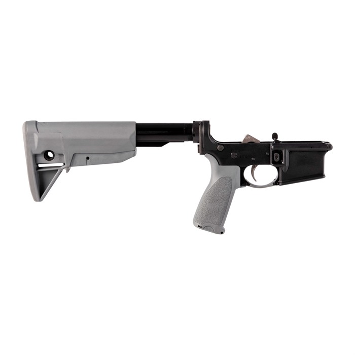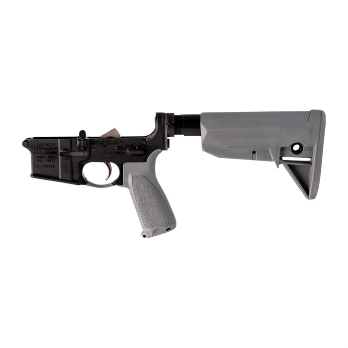 BCM COMPLETE LOWER RECEIVER W/ BCMGUNFIGHTER™ STOCK FOR AR-15 A long time popular item with many Brownells customers, the BCM® AR-15 Complete Lower Receiver is a perfect choice when building up a no-nonsense AR for defense, training, competition, or any situation where reliability is a must. Whether you are looking to simply do a “Two Pin” build by attaching a complete upper receiver or you are building out a customer upper, the BCM® Complete Lower Receiver is an easy and dependable way to complete your build. Machined from 7075-T6 aluminum forgings with a Mil-Spec hard coat anodized finish, the lower receiver is completed with the BCM® small parts that keep this receiver as reliable as you would assume with the BCM® reputation. The trigger is the BCM® PNT™ trigger which has a nickel teflon finish and is un-notched to be compatible with 9mm use, and the BCM® trigger guard gives extra space when shooting with gloved hands. The popular BCM® Mod 4 Pistol Grip comes standard on the lower receiver. A BCMGUNFIGHTER™ Stock is available in your choice of Black and Flat Dark Earth on a Mil-Spec receiver extension which also includes a BCM® QD Endplate and staked castle nut. SPECS Machined Aluminum Forgings 7075 T6 Hardcoat Anodizing: MIL-A-8625F, Type III, Class 2 Caliber marked as “Multi” Includes a USGI H buffer Build with confidence and ease with the BCM® AR-15 Complete Lower Receiver.